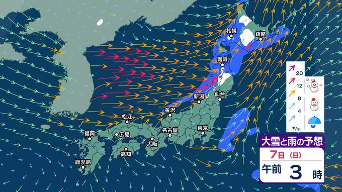 【大雪情報】東北日本海側南部は大雪となっている所が…4日夕方にかけて大雪に警戒 雪を伴った西よりの強い風が吹き海上ではしけに【大雪と雨シミュレーション】 チューリップテレビ 2025年12月4日(木) 12:19 国内 暮らし・マネー 7日(日)大雪と雨シミュレーション