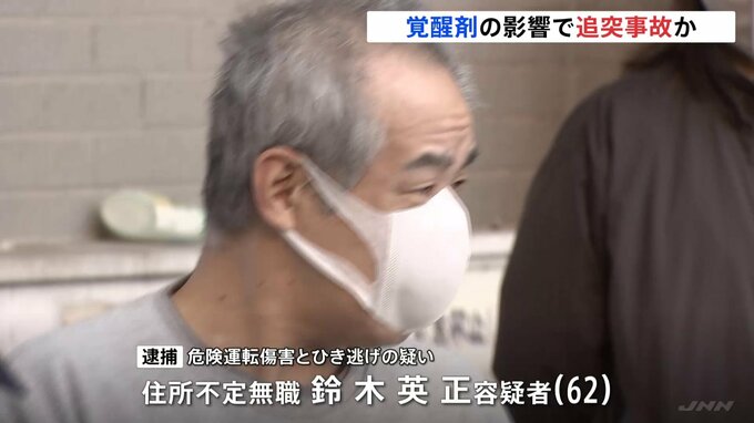 覚醒剤の影響で正常な運転が難しい状態で乗用車を運転し、配達用の3輪バイクに追突して男性にけがをさせたとして、62歳の男が逮捕されました。危険運転傷害とひき逃げの疑いで逮捕されたのは、住所不定無職の鈴木…