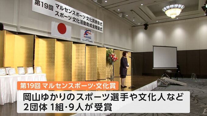 スポーツや文化・芸術の分野で活躍した岡山ゆかりの人や団体に贈られる「マルセンスポーツ・文化賞」の表彰式が岡山市北区で行われました。
