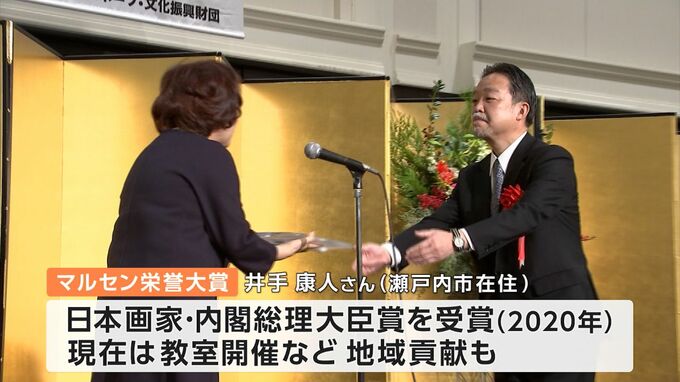 栄誉大賞を受賞したのは日本画家の井手康人さんです。2020年に内閣総理大臣賞を受賞し、現在は日本画教室を開くなど地域の発展に貢献していることなどが評価されました。