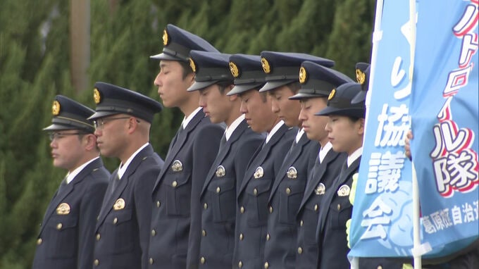 この後、小倉競馬場の前で特別警戒出発式が開かれ、2024年12月に中学生2人が殺傷された事件の被害者に黙祷しました。