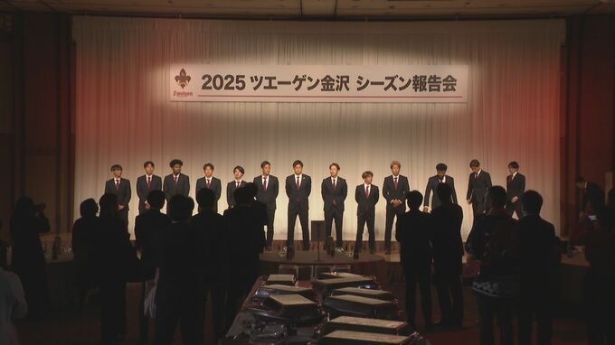 サッカー明治安田J3リーグ、今シーズンを6位で終え、J2昇格をかけたプレーオフに進出したツエーゲン金沢が3日夜、金沢市内のホテルでサポーターらを前に報告会を開きました。