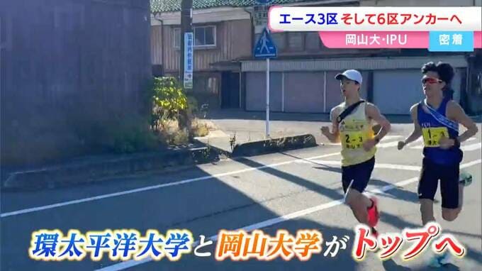 3区の走り出しでは、先行していたのは広島経済大と広島大。しかし山本選手は、ライバル・岡大のエース・赤澤京弥選手とともに、あっという間に先頭に躍り出ると、デッドヒートを繰り広げます。