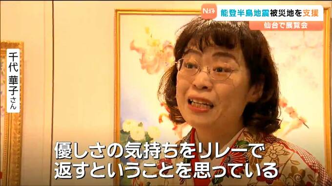 能登半島地震の発生から2年となるのを前に、かつて金沢で暮らした画家の展覧会が4日から仙台で始まりました。売り上げの一部は石川県に寄付されます。
