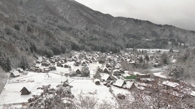 そして、きょう積雪のあった岐阜県山間部。雪化粧した世界遺産・白川郷には多くの外国人観光客の姿がありました。