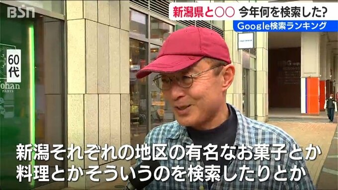 【60代男性】「食べるのが好きなので、新潟それぞれの地区の有名なお菓子とか料理とか検索したりとか。あとはやっぱりラーメン屋さん」