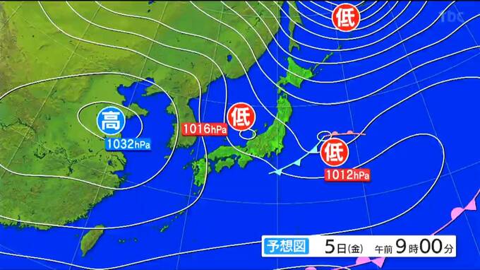 日本海の低気圧が東北地方を通過するため、北日本や日本海側では、広く雪や雨が降るでしょう。