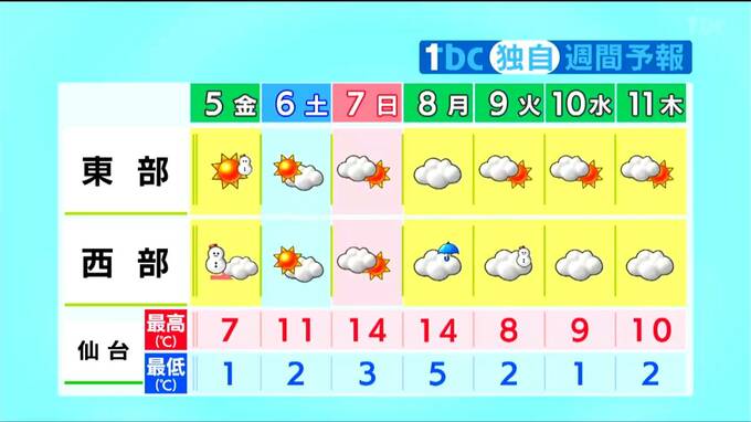 最低気温は氷点下となる所が多く、12月4日朝と同じくらいでしょう。車を運転する際は、スリップに注意してください。最高気温は6℃前後と、真冬の寒さが続きそうです。