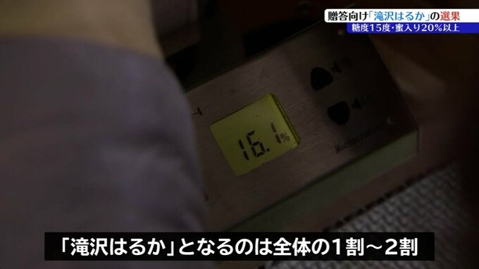 4日は「滝沢はるか」のブランド推進に取り組む滝沢市観光物産協会や、滝沢市の職員がおよそ2000個の「はるか」の糖度や蜜入り、そして見た目などを厳しく判定していました。