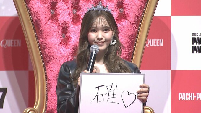 今年1年を表す漢字は、「確」と答え、“お仕事が確変モードになってる。雑誌の専属モデルを卒業したのがキッカケで、いろんなお仕事に挑戦する機会が増えた。今回のパチンコのお仕事もそうですけど、違うにこるんも皆さんにお届けできてるんじゃないかな”と説明しました。