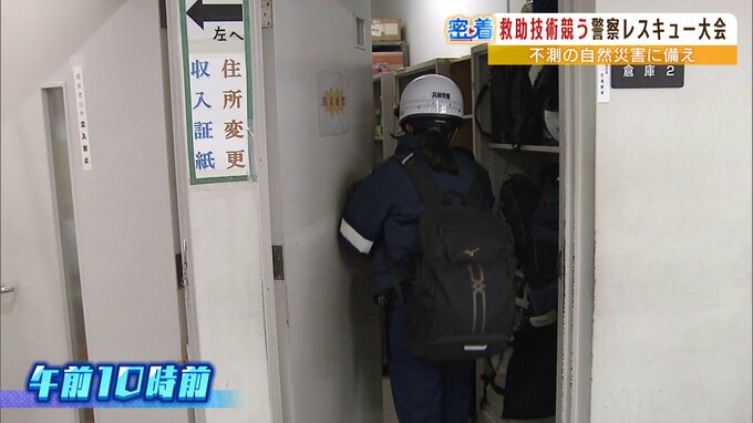 警察署対抗で行われる『兵庫県警レスキュー大会』。救助能力の向上が狙いで5年前にスタートしていて、災害時にいち早い現場対応が求められる主に交番勤務の警察官らが参加します。今年12月8日に兵庫県小野市で行われた大会には、県内46の全警察署から1チーム5人の計約230人が出場。それぞれの警察署が威信をかけて臨んだ戦い。大会2連覇中である甲子園署の中で、大会初出場である甲子園署の安井彩奈巡査(25)に密着しました。