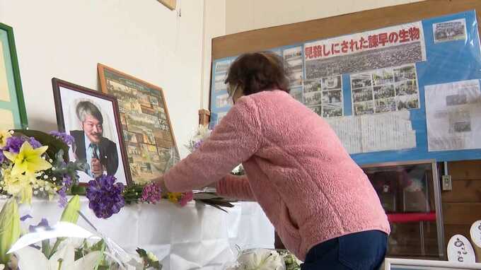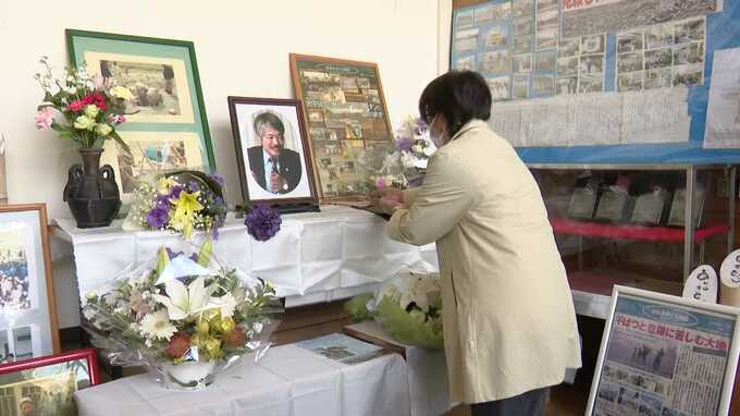 会場には、中村さんの功績を伝える展示や献花台が設けられています。