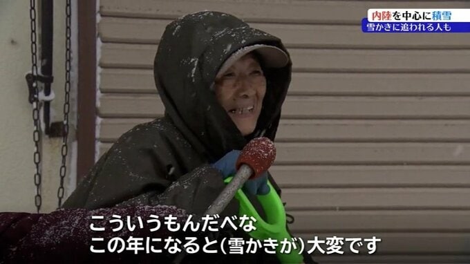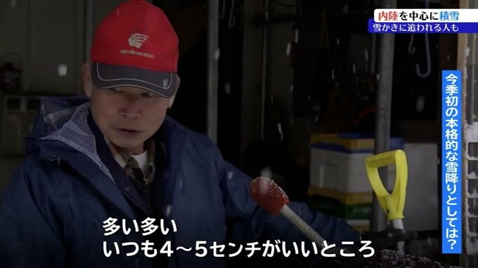 「今シーズン始まったなと。しょうがない。ここに住んでいる限りはしょうがないからさ。(今シーズン初の本格的な雪降りとしては?)多い多い。いつも4、5センチがいいところ」