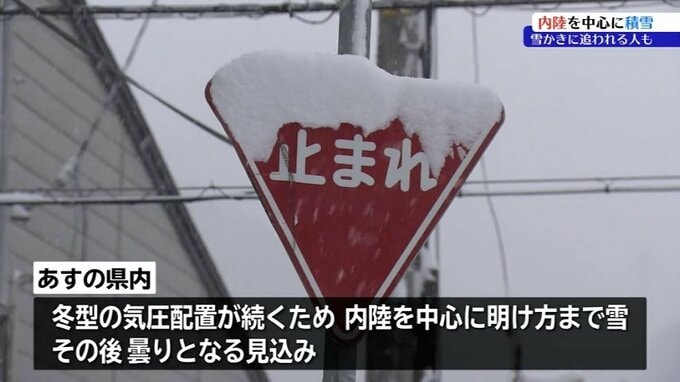 町では除雪車が出動し、雪かきをする人の姿も見られました。