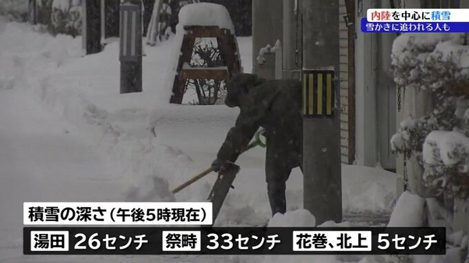 西和賀町湯田では午後5時現在の積雪の深さが26センチとなっています。