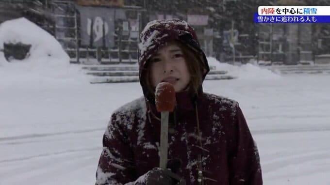 「西和賀町の湯田では、少し外にいるだけで体に雪が積もるくらいしっかりと降っています。時折風が吹くと、顔に雪が吹き付けてきます」