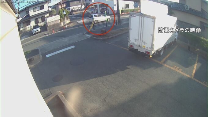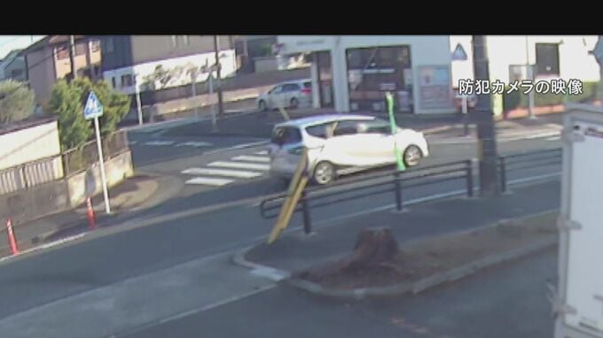 現場付近に設置された防犯カメラの映像です。車が減速せずに横断歩道に進んでいきます。