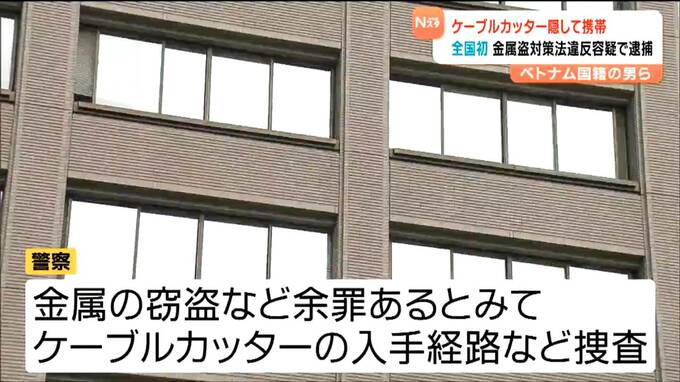 金属ケーブルを切断するケーブルカッターを正当な理由なく隠し持っていたとして、ベトナム国籍の男3人が、12月4日に金属盗対策法違反の疑いで逮捕されました。2025年9月にこの法律が施行されてから、容疑者が逮捕されるのは全国で初めてです。