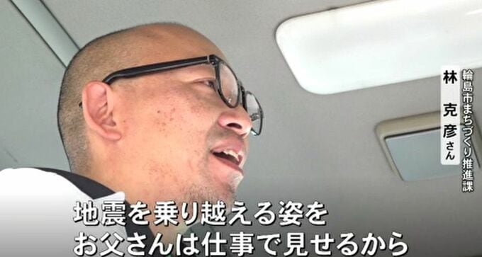輪島市まちづくり推進課・林克彦さん「地震を乗り越える姿をお父さんは仕事で見せるから、その姿を見ていてねと。だから仕事を頑張る姿を後で思い出した時に、お前たちが災害を克服する何かになってくれたらお父さんも嬉しいと思うから仕事頑張って良いですか?って聞いたんですよね。そしたら「良いです」って言ってくれたから、私はそれをいまだに心において仕事を頑張っています」