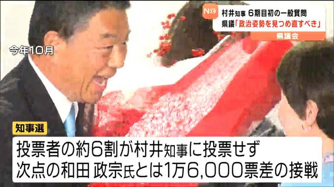 10月の知事選で当選してから初めてとなる宮城県議会一般質問に臨んだ村井知事。知事選では6選を果たしたものの、投票者の約6割が村井知事には投票せず、次点の和田政宗氏とはわずか1万6000票差の接戦となりました。