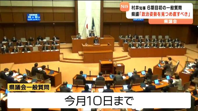 一般質問では、与党会派の議員から知事選の結果をふまえ「政治姿勢を見つめ直すべき」などと厳しい声が上がりました。