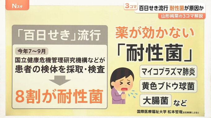 感染者が去年の20倍に及び、過去最多となっている「百日せき」。その流行に拍車をかけたといわれているのが、薬の効かない「耐性菌」です。