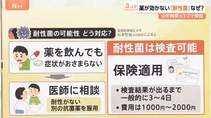 ただ、いろいろな薬を試しても症状が改善しないこともあるそうです。そうしたときには、医師のすすめによって耐性菌を検査できるといいます。