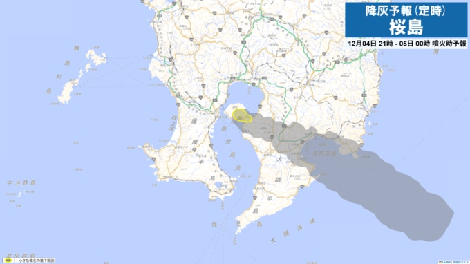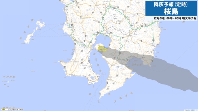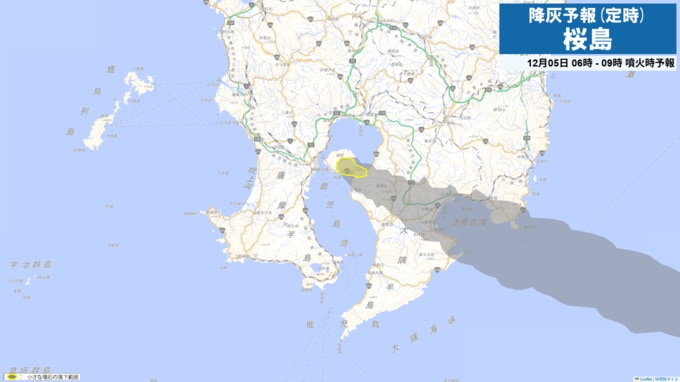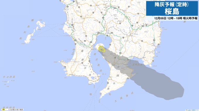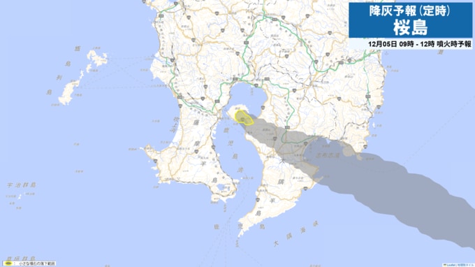5日09時から12時までは火口から南東方向に降灰が予想されます。