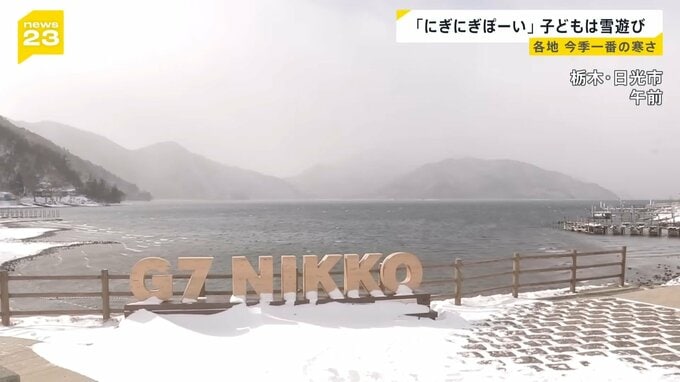 雪の影響は関東北部でも。栃木県日光市の中禅寺湖。風も強く、身をかがめて歩く人がいます。もみじには雪がかぶり、市内には除雪車も。ハトは雪を避けるように歩いています。
