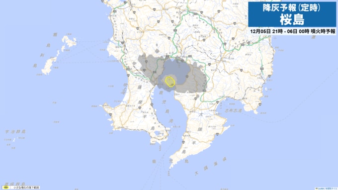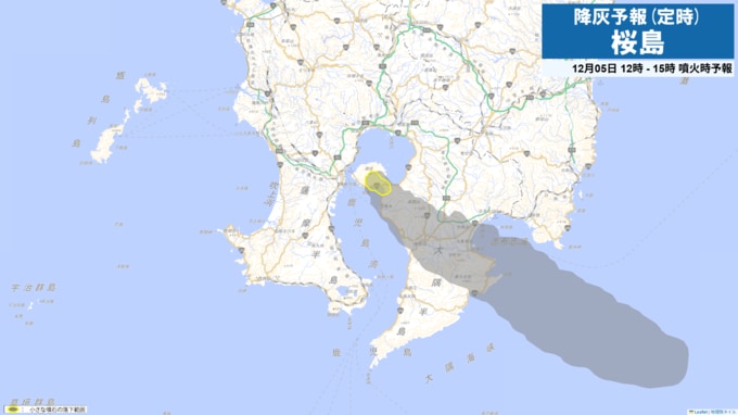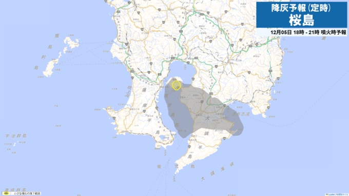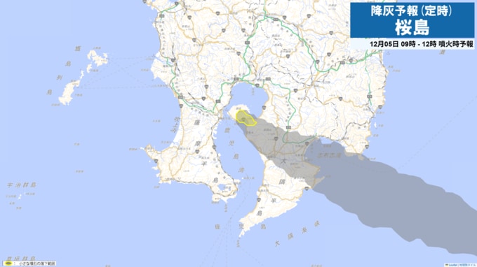 桜島で噴火が発生した場合には、5日09時から12時までは火口から南東方向、5日21時から24時までは火口から東方向に降灰が予想されます。