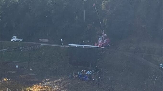 【写真で見る】コンクリートミキサー車が転落した事故現場