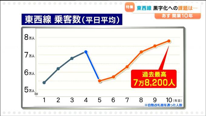 乗客数は新型コロナの影響で落ち込んだものの、その後再び増加し、開業10年目の2024年12月から2025年11月までの1日あたりの乗客数は7万8200人と過去最高となっています。