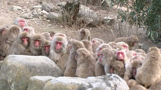 寒くなると身を寄せ合って暖を取る「サル団子」が見られる、銚子渓自然動物園「お猿の国」です。