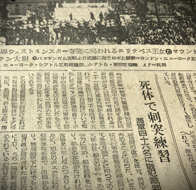 <死体で刺突練習 海軍四十六名に戦犯裁判>1947年11月23日朝日新聞