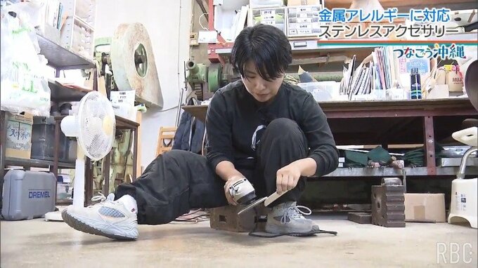 名嘉さんがこの素材に魅せられたのは、金属アレルギーを抱えていた自身の体験がきっかけです。