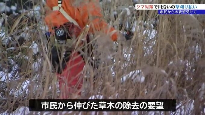 川沿いで伸びた草木はクマの隠れ場所になりやすく、市民から除去の要望があったことから市は今回初めて刈り払いを実施しました。