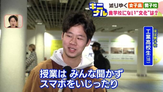 「授業は、みんな聞かずスマホをいじったりしてます。(それは男子が多いから?)そうじゃないですかね」