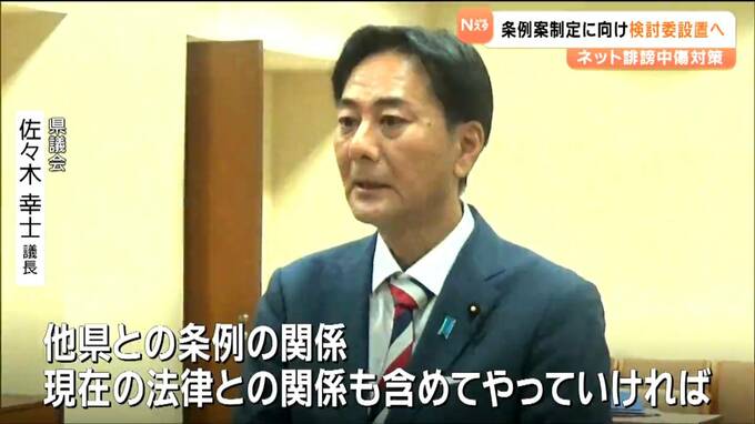 会議では表現の自由に配慮しつつも、県民を誹謗中傷から守るために条例による対策が必要だとして、検討会を設置する方向で一致しました。