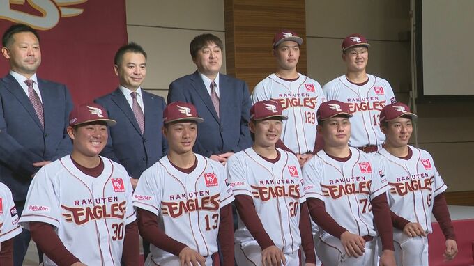 いわき市出身で、子どものころから楽天のファンだったという大栄選手。憧れのチームのユニフォームを身にまとい、プロでの活躍を誓いました。