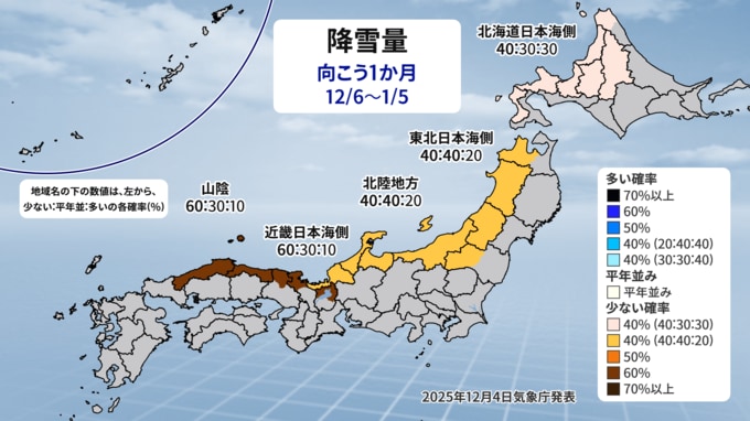 降雪量は「平年並み」か「少ない」傾向ですが、油断は禁物です。