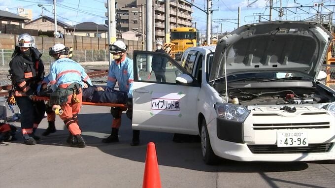 乗客4人と車のドライバーがけがをした想定です。負傷者の救出や乗客の誘導などを一連で行い連携の強化を図ったほか、脱線した列車を軌道上に復旧させる手順などを確認しました。