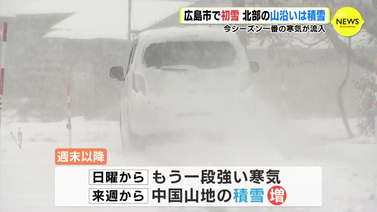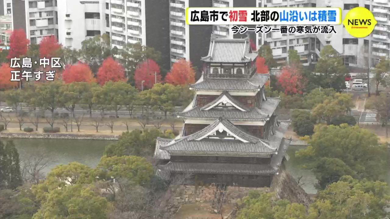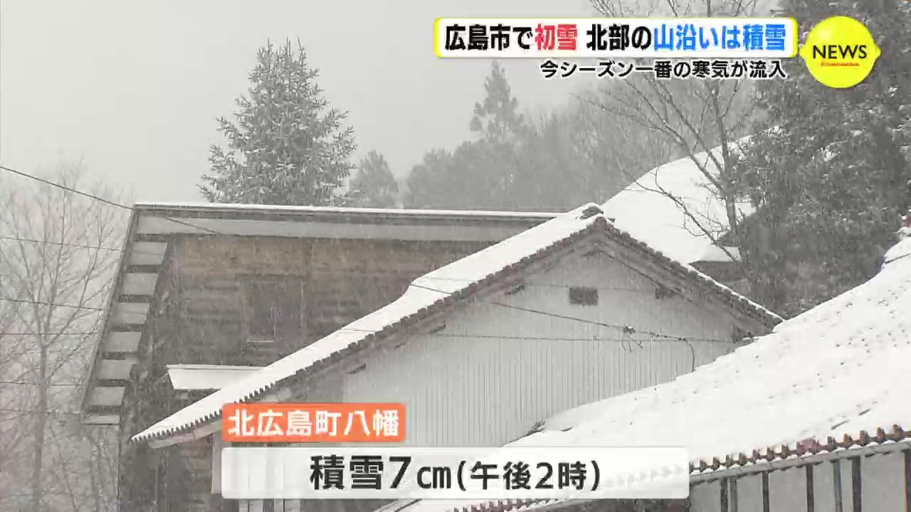 広島県内にはこの冬一番の寒気が流れ込み、北部の山沿いの地域では雪が積もりました。広島市中心部でも一時、雪が舞い、初雪を観測です。