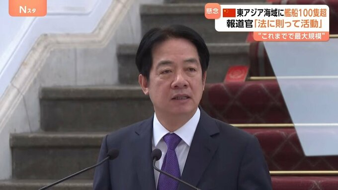 中国軍や海警局が100隻超の艦船展開と報道 「法に則って活動」中国外務省が主張 TBSテレビ 2025年12月5日(金) 18:48 国際 台湾報道官「大国としての責任果たし、行動自制すべき」 こうした中、台湾総統府によりますと、頼清徳総統は国防部などに対して状況を把握するよう指示したということです。 また、総統府の報道官は中国に対して、大国としての責任を果たし、行動を自制すべきだと呼びかけました。