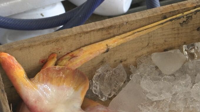 「アカエイ」を販売する市内の鮮魚店。切り身にして販売してはいますが、トゲには毒があり、身として活用できる部分も少ないことから、あまり売れる商品ではありません。しかし・・・。