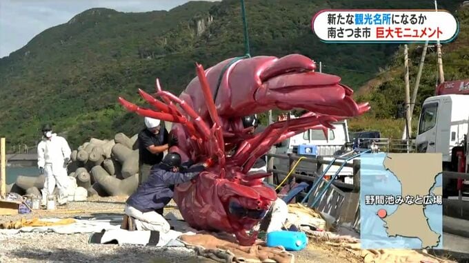先月24日、南さつま市笠沙町。東シナ海を臨む「野間池みなと広場」に、モニュメントのパーツが運ばれてきました。