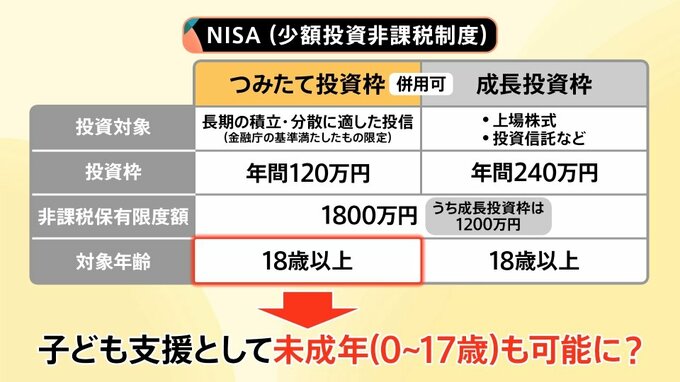 株などを一定額まで非課税で投資できるNISA。現在、18歳以上が対象ですが、0歳から投資できるよう検討が進んでいます。