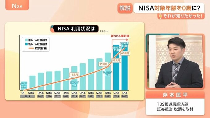 ただ、専門家に話を聞くと、ある程度「金融リテラシー」が高い人、投資に興味のある人が口座を開設したため、口座数は頭打ちの状態にある。「次は対象の年齢を広げていこう」というフェーズに変わったとの指摘もあります。
