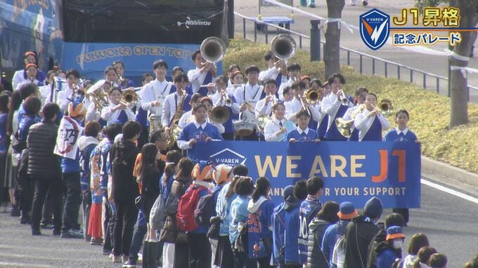 チームを支えてくれた県民やサポーターにJ1昇格の報告と感謝を伝えようと開催されるパレード。長崎市の沿道には朝から約5000人が詰めかけました。