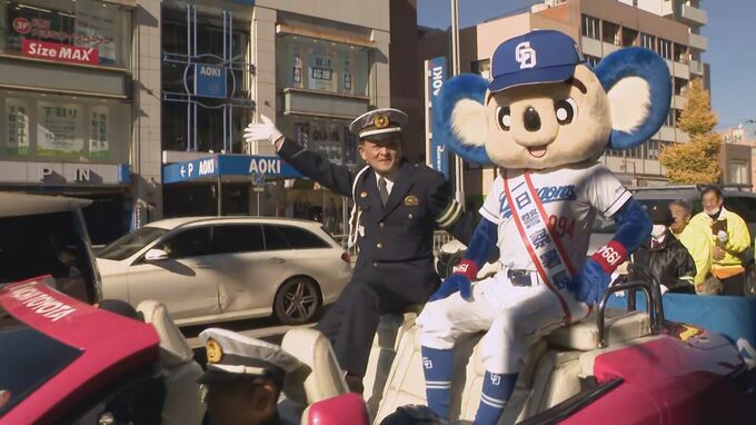 “ドアラ署長”はこの後、オープンカーに乗りながら、道行く人に交通安全と防犯の徹底を呼びかけました。