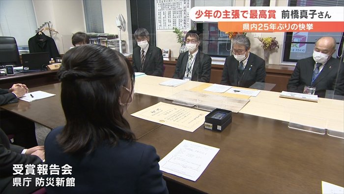 前橋さんは14日、手島俊樹教育長に受賞を報告し、発表へ向け指導を受けながら練習を重ねたことなどを語りました。
